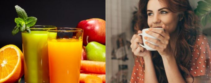 Op de lijst staan onder andere sap en koffie. Het juiste drankje kiezen kan een lastige taak lijken / collage door My, foto door depositphotos.